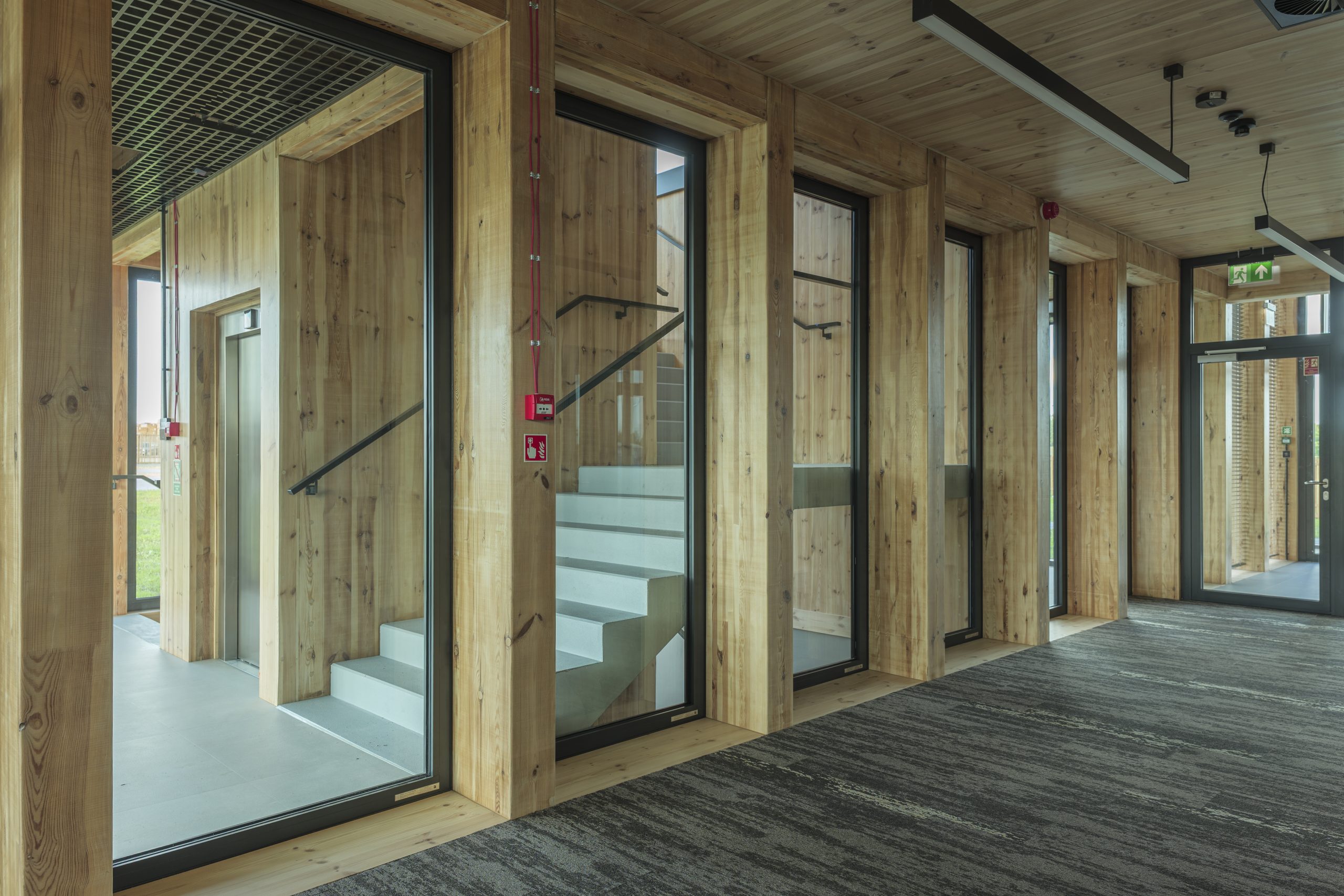 Projekt wyróżnia także świadome podejście do kwestii środowiskowych. Budynek wpisuje się w nadchodzące europejskie standardy zero emisyjności, a zastosowanie CLT znacząco redukuje ślad węglowy inwestycji. To nie tylko architektura „zielona”, ale przede wszystkim odpowiedzialna – pokazująca, że zrównoważony rozwój może iść w parze z wysoką estetyką, trwałością i funkcjonalnością.