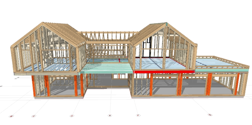 Realizacja stanowi dowód na to, że nawet najbardziej wymagające przypadki – budynki z narożnymi nawisami, dużymi rozpiętościami stropów oraz otwartymi przestrzeniami – mogą być z powodzeniem wykonane w technologii szkieletowej. Podejście to udowodniło, że nie tylko da się zrealizować skomplikowany projekt w technologii szkieletowej, lecz także warto postawić na drewno ze względu na liczne korzyści – zarówno ekonomiczne, jak i środowiskowe.